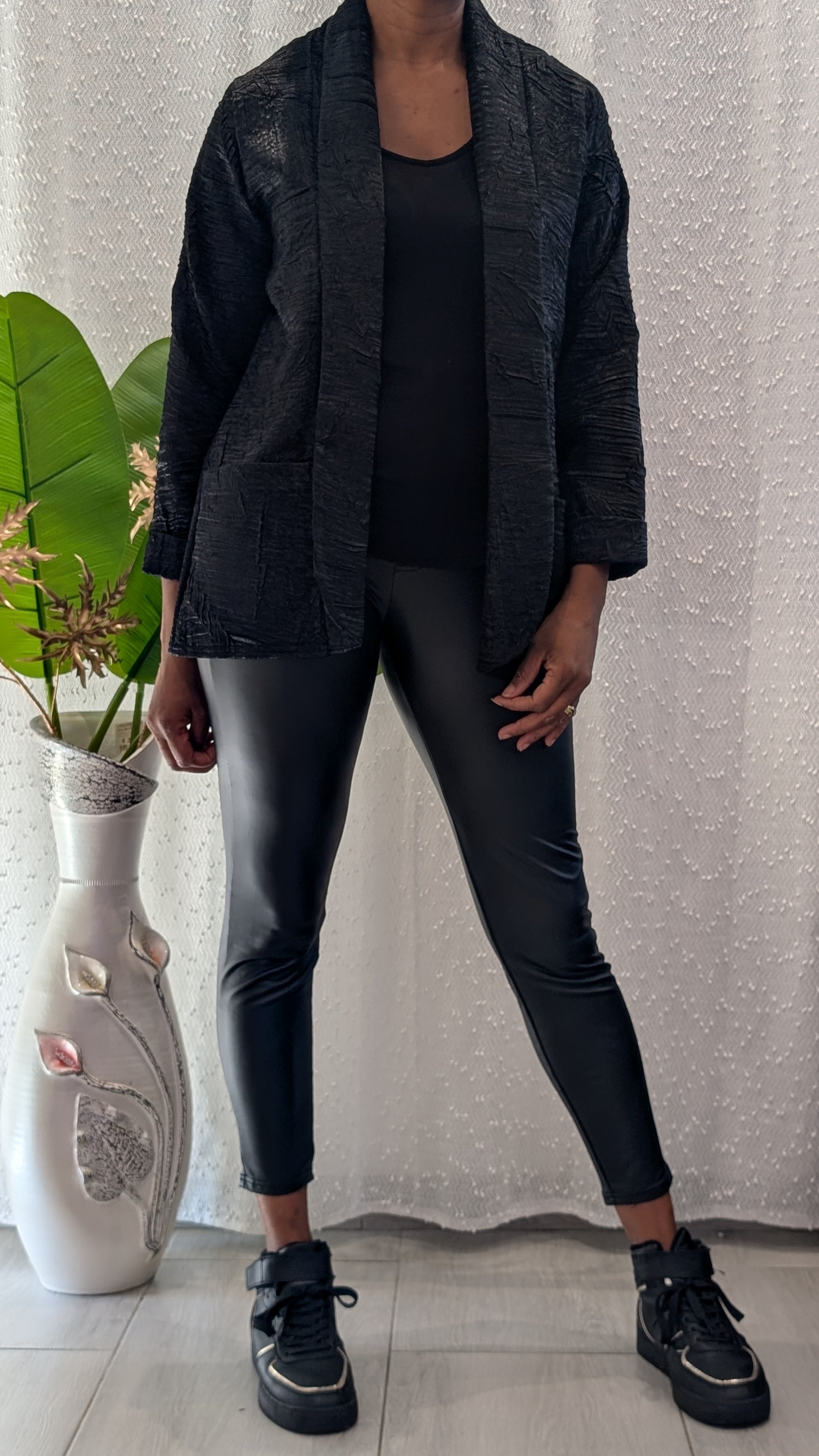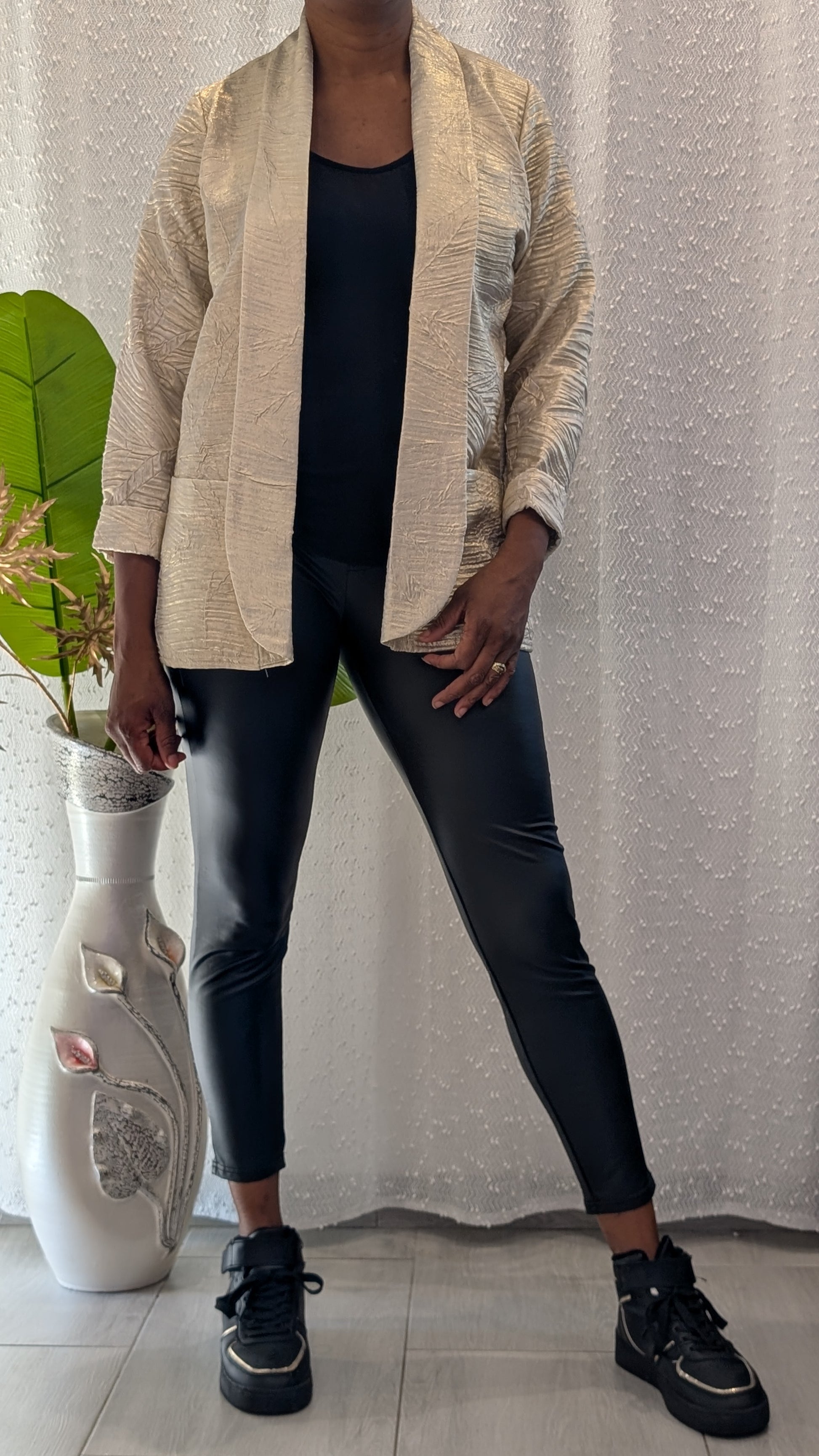 Veste lumineuse au style affirmé. Son tissu scintillant capte la lumière à chaque mouvement, pour un look chic et audacieux, de jour comme de nuit.