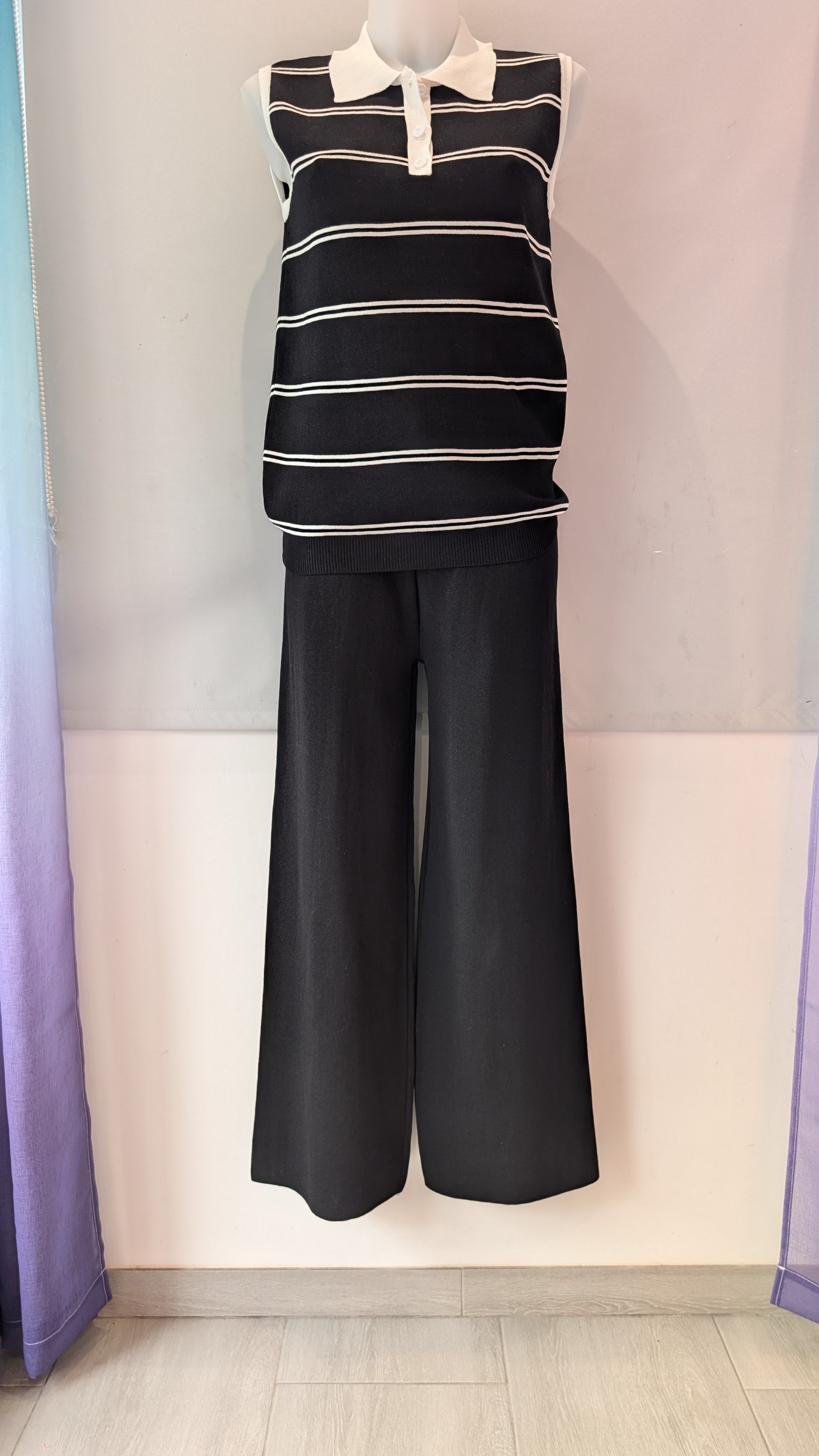 Avec ses lignes nettes et son contraste affirmé, Dualité incarne la parfaite harmonie entre classicisme et audace. Le polo ajusté et raffiné, s’allie à un pantalon fluide pour créer une silhouette à la fois puissante et féminine. Les deux couleurs se répondent sans jamais s’opposer. C’est une tenue pour celles qui avancent avec assurance, entre lumière et mystère, élégance et simplicité.