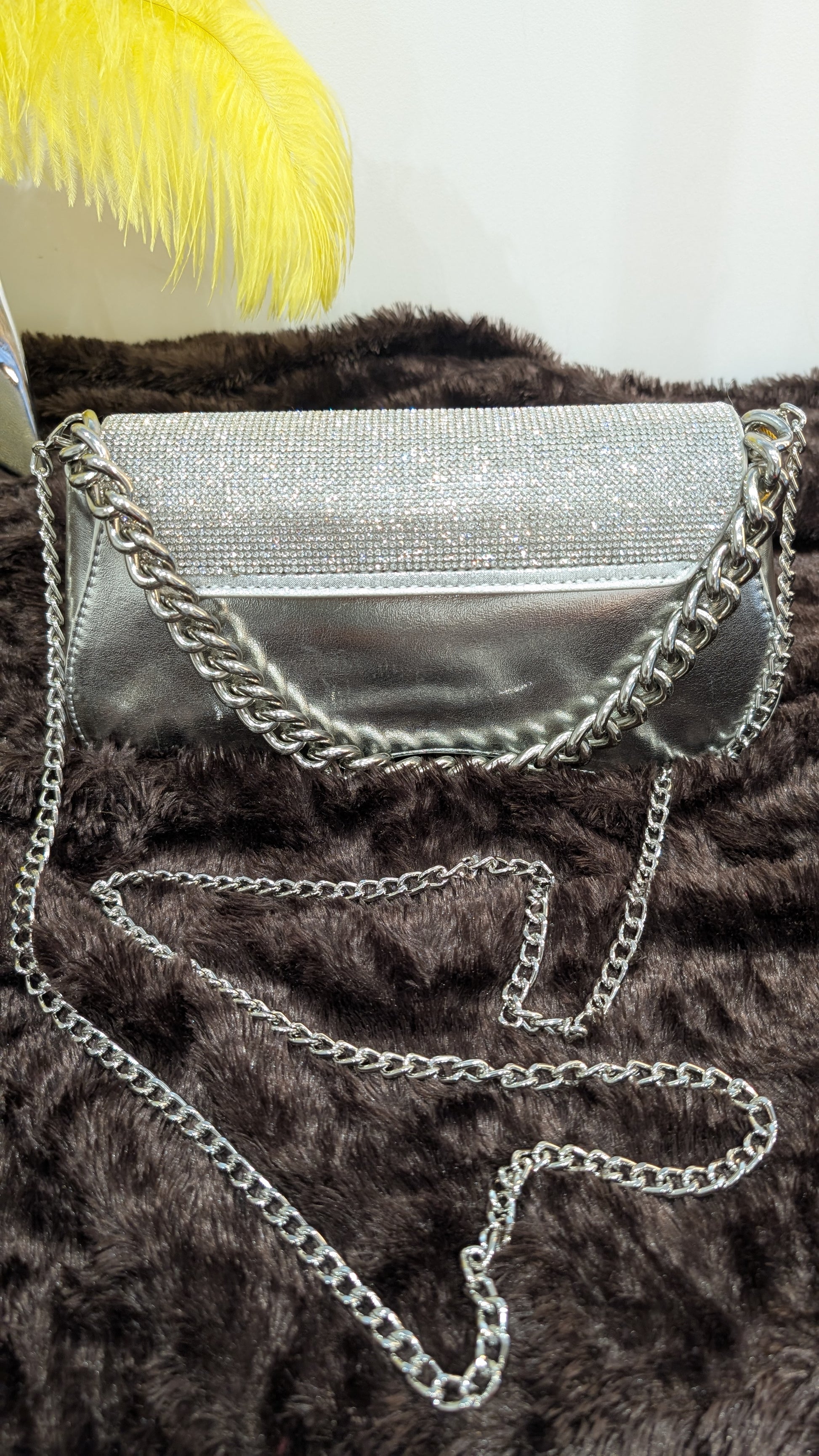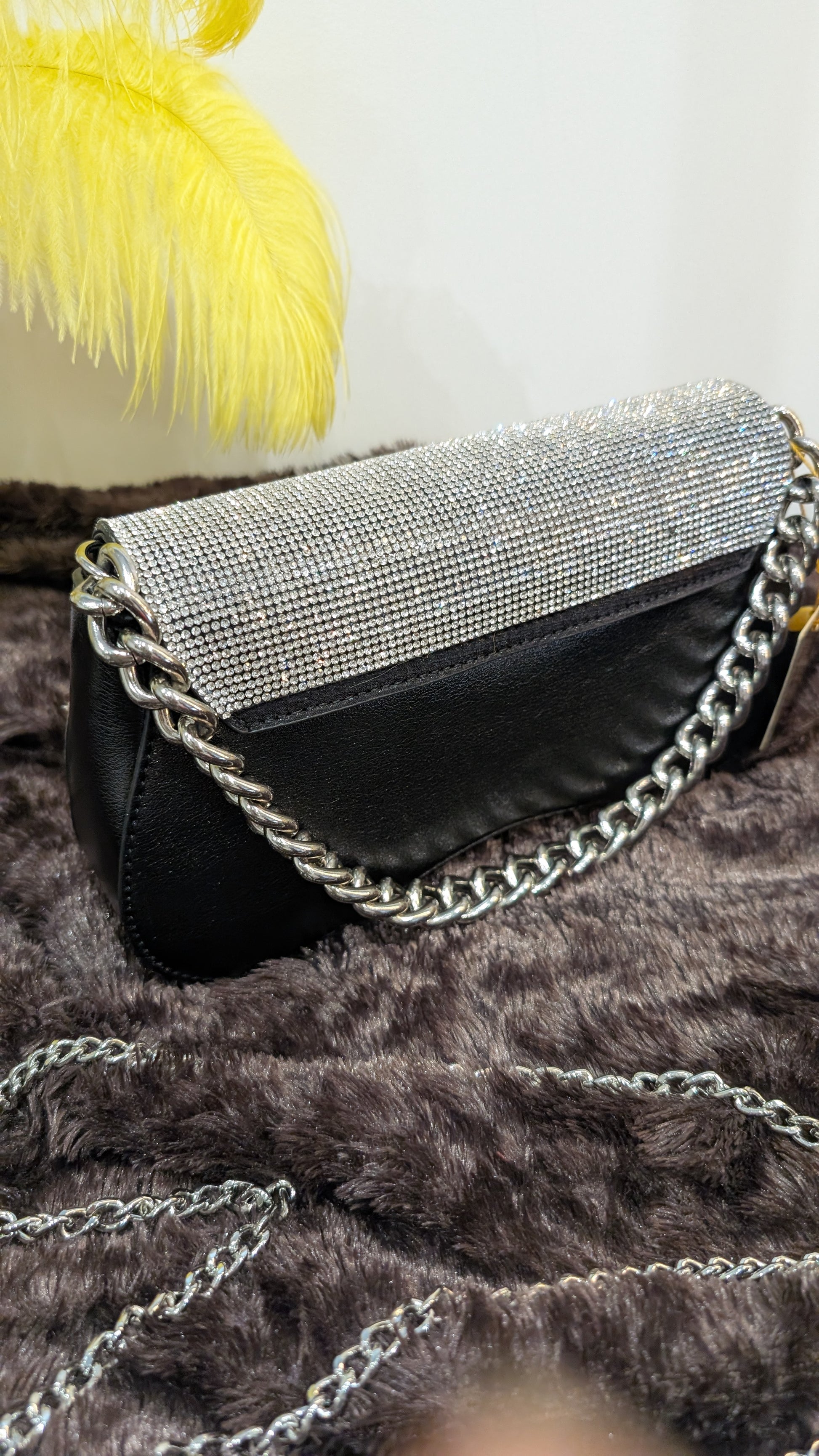 Sac raffiné, recouvert de strass scintillants. Avec sa ligne structurée et son éclat lumineux, il apporte une touche glamour et sophistiquée à toutes tes tenues, du chic quotidien aux soirées élégantes.