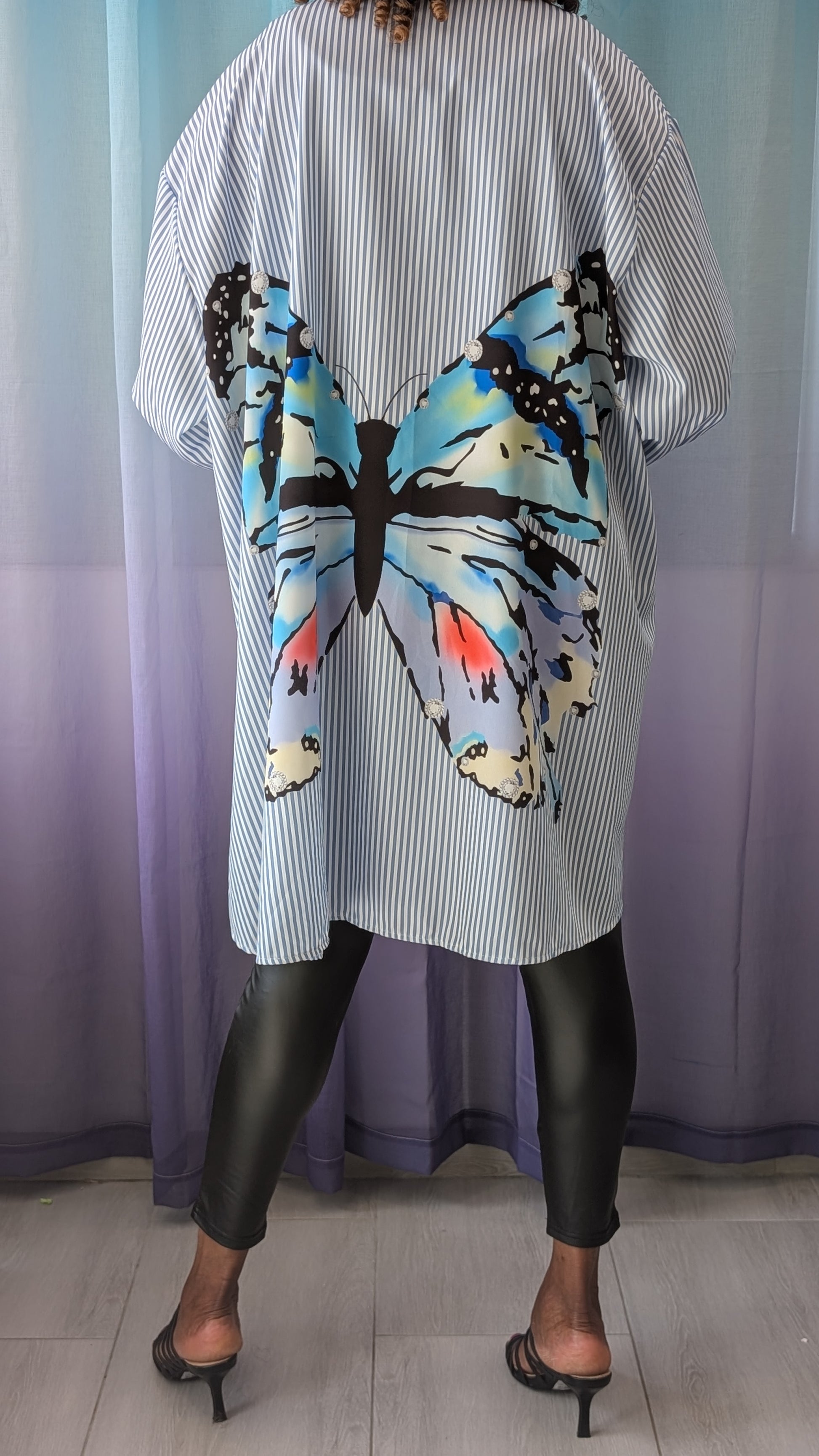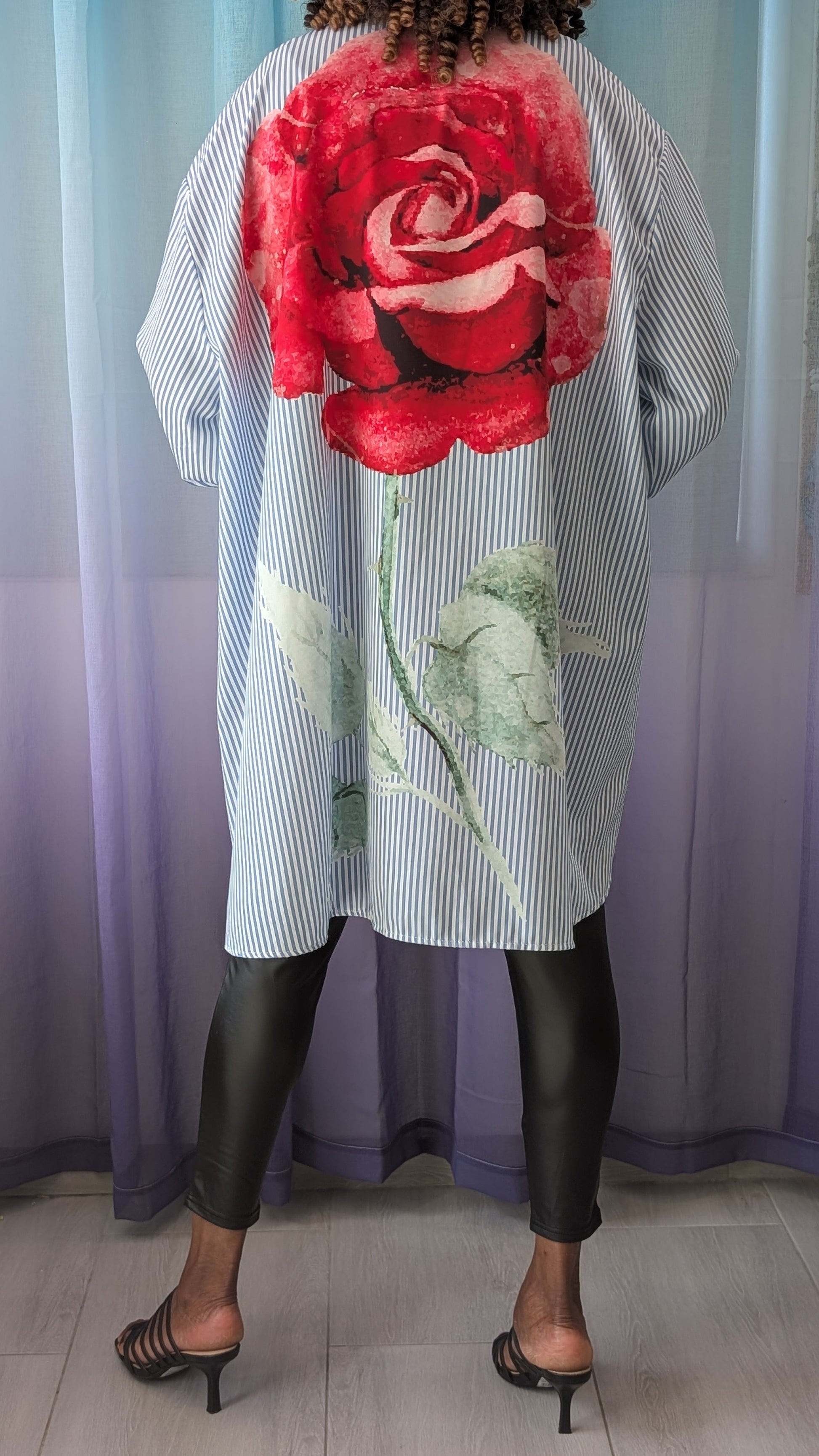 Avec son design affirmé et ses fines lignes verticales qui élancent la silhouette, Estival est une chemise d'été urbaine qui mêle douceur et caractère. Sur fond blanc, le contraste entre la légèreté des motifs et le graphisme des rayures crée un look équilibré, entre fraîcheur estivale et style affirmé. Légère, fluide et originale, elle s’impose comme la pièce forte de toute tenue street chic.