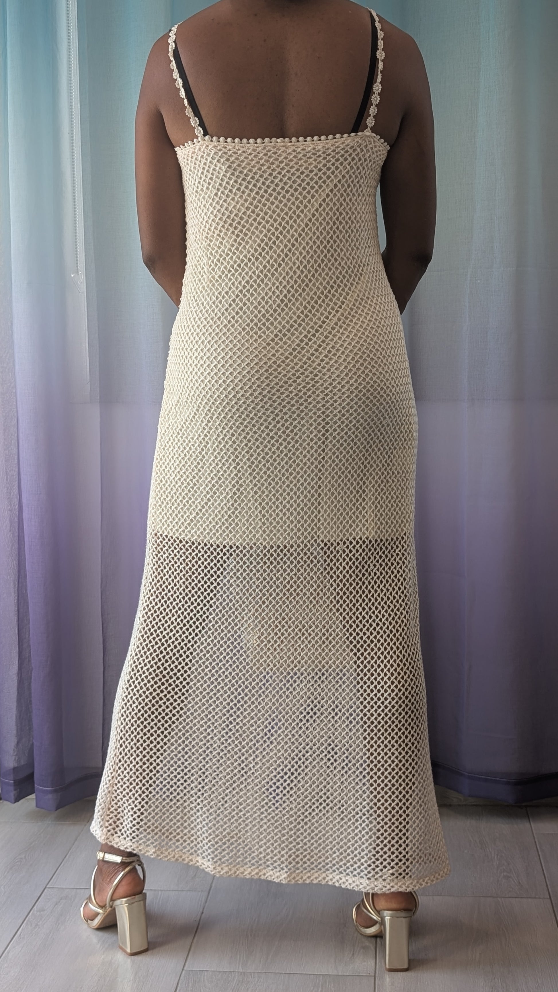 Élancée, éthérée et intensément romantique, Lune ivoire est la robe longue en dentelle qui transforme chaque pas en murmure. Ses bretelles fines dévoilent les épaules avec grâce, tandis que la dentelle délicate, tout en transparence et en poésie, dessine sur la peau des jeux d’ombre et de lumière. C’est une pièce pour les âmes libres, les soirées étoilées, ou les amours d’été qu’on n’oublie jamais. À porter pieds nus ou avec des sandales fines, l’élégance s’y glisse naturellement.